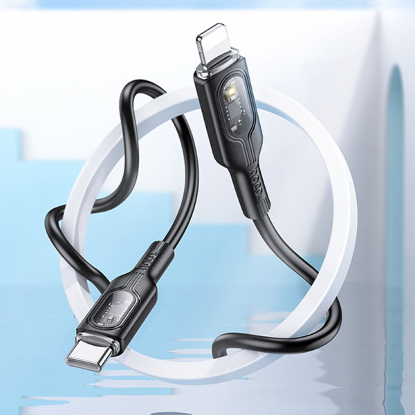Дата кабель Hoco U120 Transparent explore intelligent power-off PD 27W Type-C to Lightning (1.2m)
