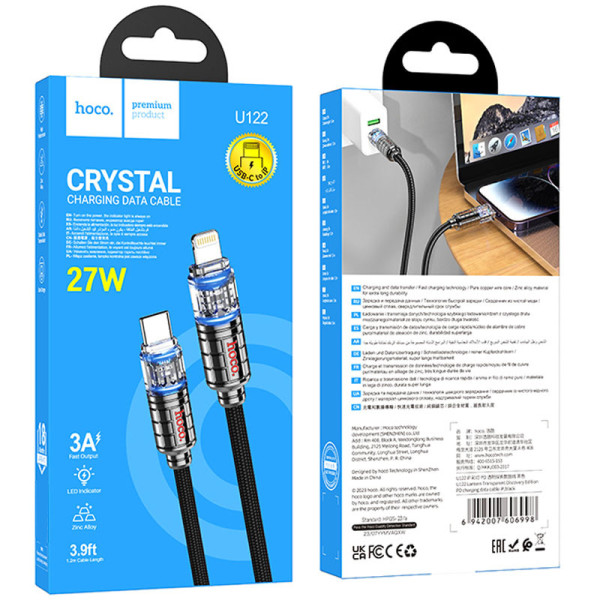 Дата кабель Hoco U122 Lantern Transparent Discovery Edition Type-C to Lightning (1.2m)