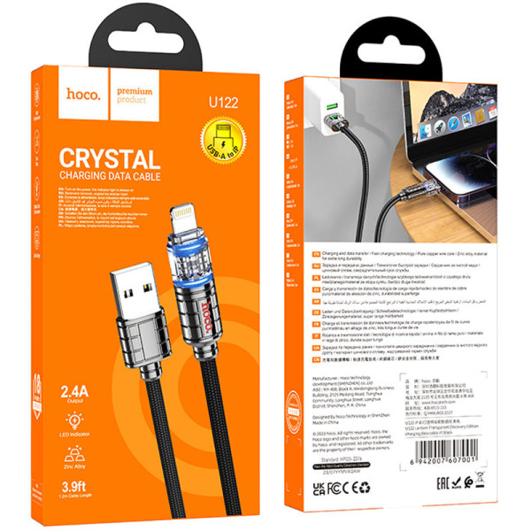 Дата кабель Hoco U122 Lantern Transparent Discovery Edition USB to Lightning (1.2m)