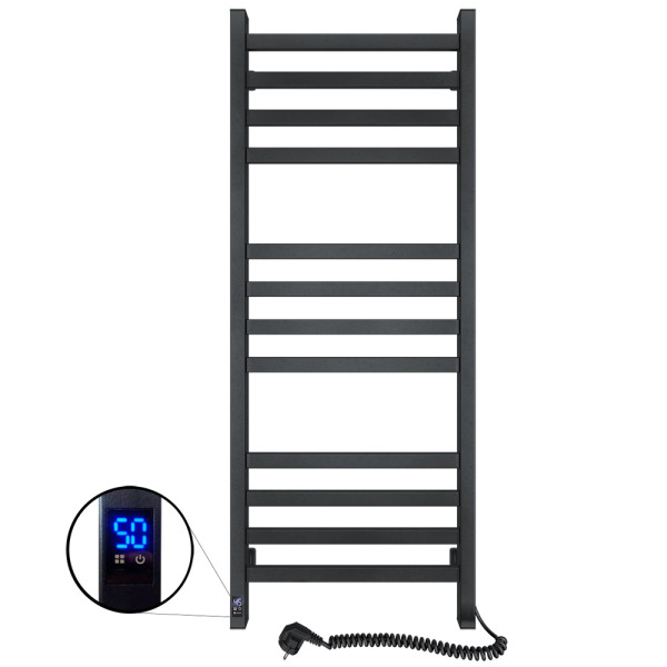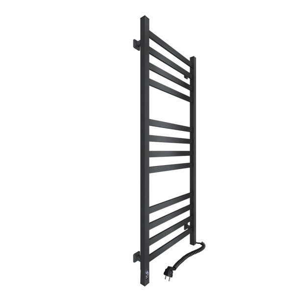 Рушникосушарка Авангард 480×1200 виготовлена з вуглецевої сталі, яка відрізняється високою міцністю та якістю. Модель має надійне порошкове покриття. Товщина стінки колекторів (стійок) і перемичок становить 1,5 мм. Розташування шнура з вилкою — праворуч, колір — чорний муар.