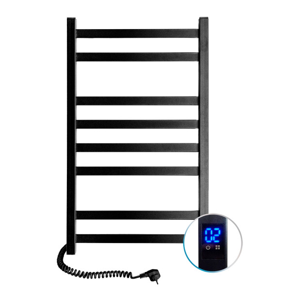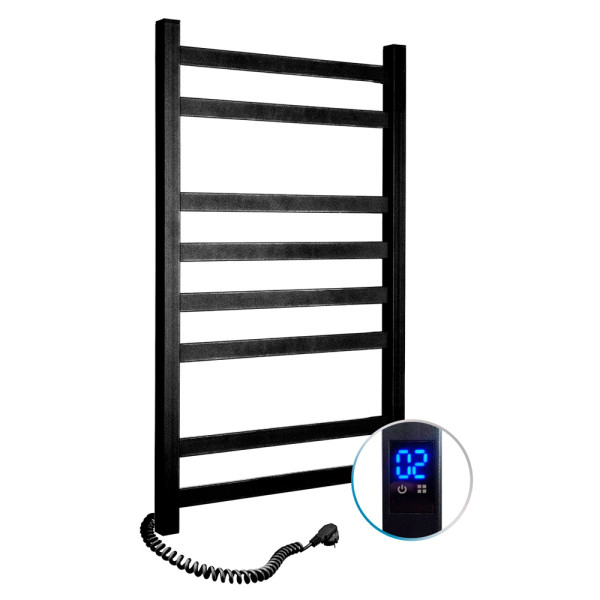Рушникосушарка Авангард 480×800 виготовлена з вуглецевої сталі, яка відрізняється високою міцністю та якістю. Модель має надійне порошкове покриття. Товщина стінки колекторів (стійок) і перемичок становить 1,5 мм. Розташування шнура з вилкою — ліворуч, колір — чорний муар.