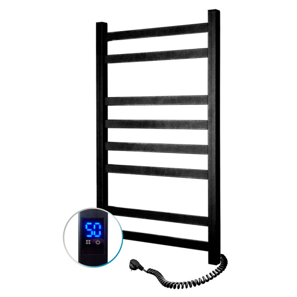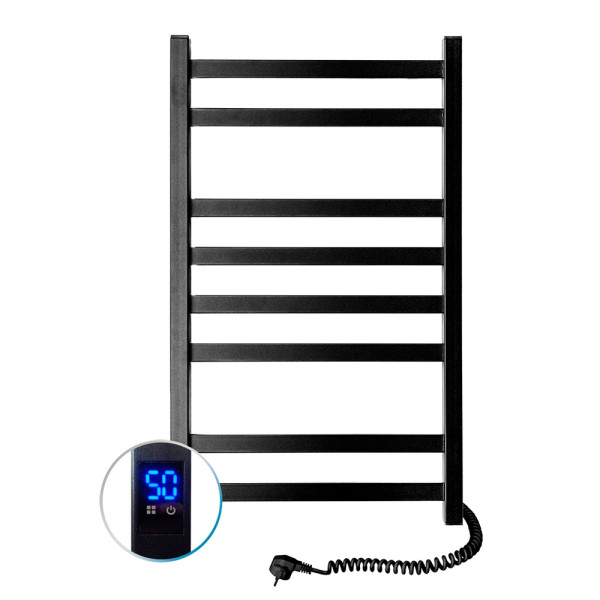 Рушникосушарка Авангард 480×800 виготовлена з вуглецевої сталі, яка відрізняється високою міцністю та якістю. Модель має надійне порошкове покриття. Товщина стінки колекторів (стійок) і перемичок становить 1,5 мм. Розташування шнура з вилкою — праворуч, колір — чорний муар.