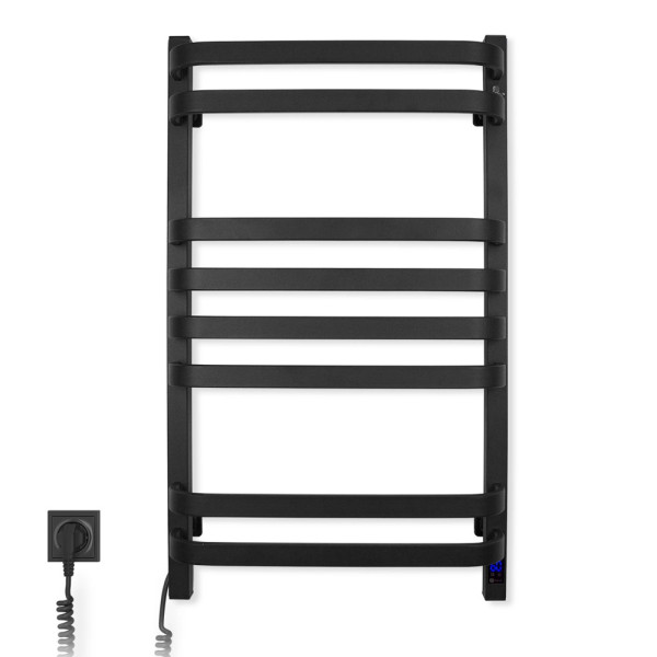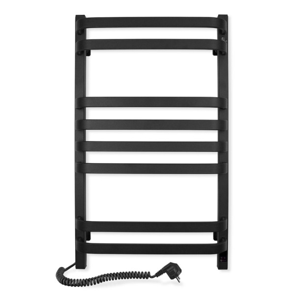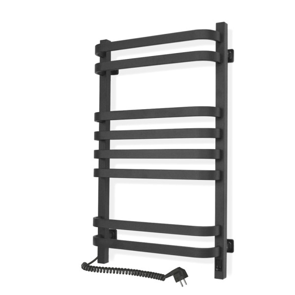 Модель 480×800 виготовлена з вуглецевої сталі, що відзначається міцністю та якістю. Має надійне порошкове покриття. Товщина стінки колекторів (стійок) і перемичок становить 1,5 мм. Розташування шнура з вилкою — ліворуч, колір — чорний муар.