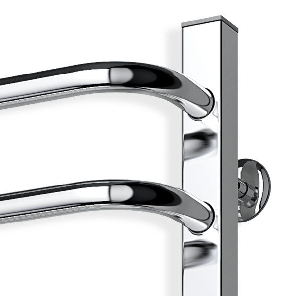 Електрична рушникосушарка Грандіс — модель із лаконічним дизайном. Бічні колектори (стійки) виконані з профільної квадратної труби 30×30 мм, а перемички — з круглих трубок 20×20 мм. Це формує стриману та чітку геометрію виробу.